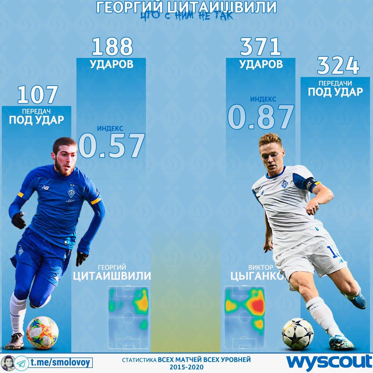 Цитаишвили - наконечник стрелы, а Цыганков - лук и тетива. Когда на поле Витя, то Бенджи его стрела. Если на поле будет две стрелы, то кто-то должен стать луком! Но кто, если Динамо играет в жёсткой фланговой доктрине (70.8% атак), а «первый пас» не важен?