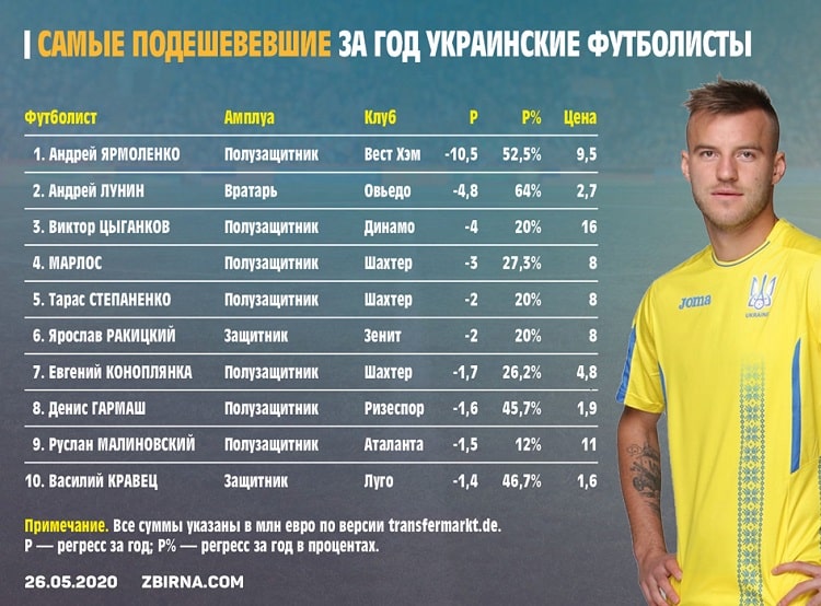 Еще в начале футбольного и общественного карантина, связанного с пандемией коронавируса, авторитетный портал transfermarkt.de, оперативно порезал цены на все без исключения исполнителей. Сия чаша не минула никого, ни Месси, ни Мбаппе, ни украинских исполнителей.