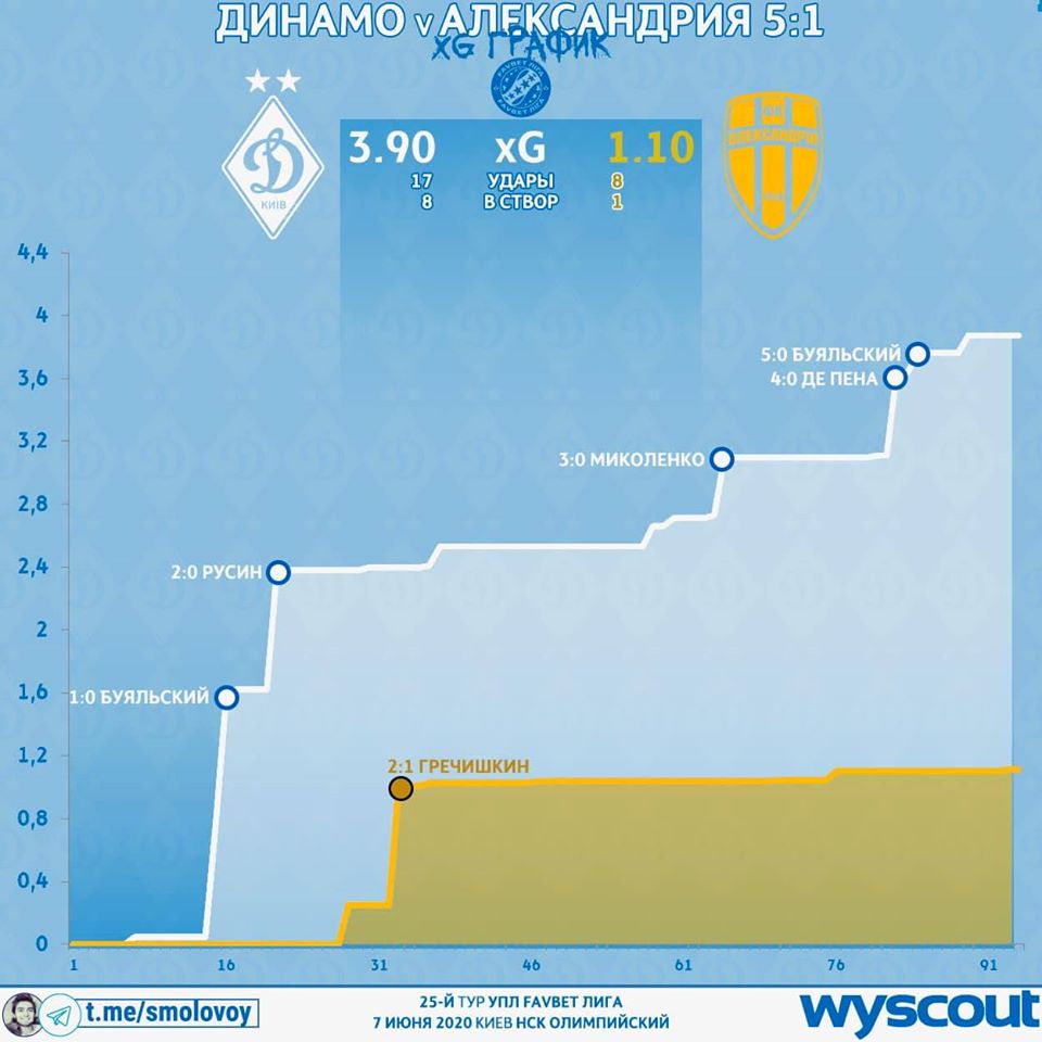 Блогер Михаил Смоловой в своем Телеграм-канале разбирает игру киевлян против "Александрии".