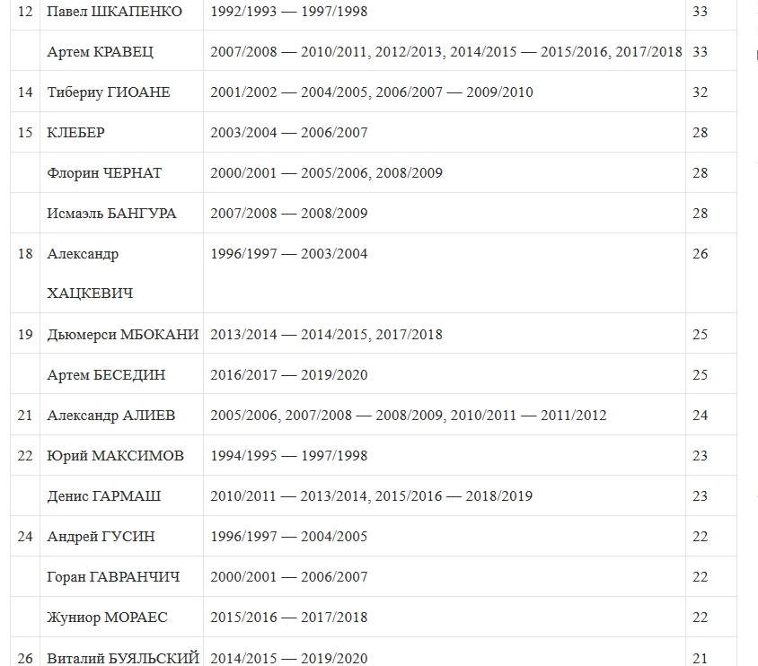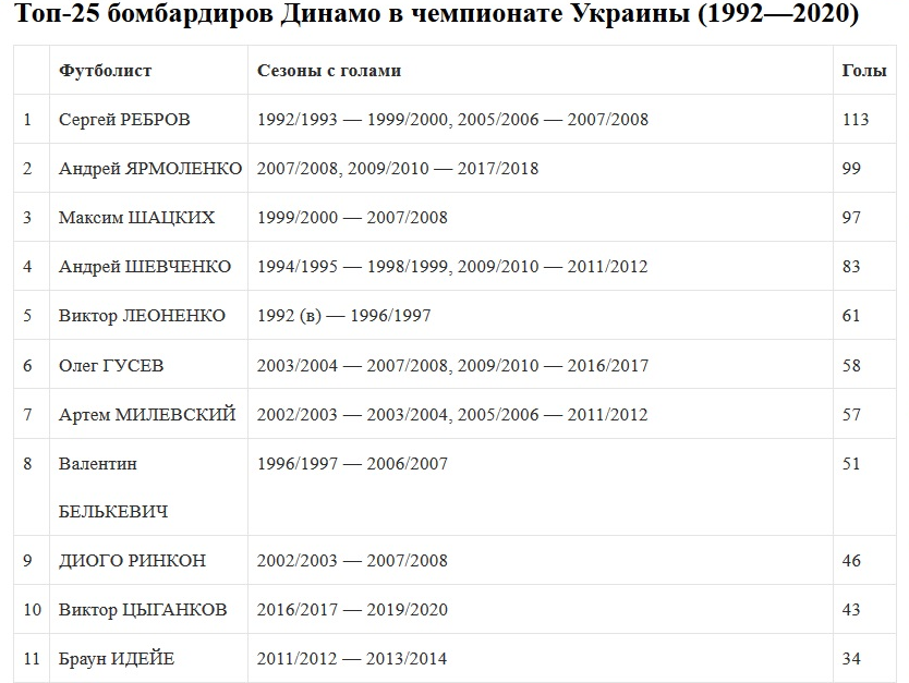 В топ-25 бомбардиров Динамо в чемпионате Украины за все годы из нынешнего состава расположились Виктор Цыганков и дисквалифицированный Артем Беседин, пишет zbirna.com.