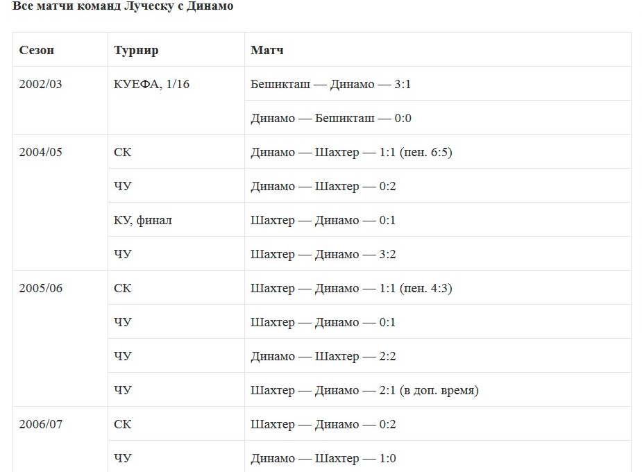 На чемпионат Украины пришлось 25 поединков, где у Шахтера Луческу 12 побед, шесть ничьих и семь поражений. В Кубке УЕФА у подопечных румына два прохода из двух попыток. В Кубке Украины горняки преодолевали Динамо в шести случаях из 10-ти, но зато проиграли в четырех финалах из шести. В Суперкубке у грандов паритет — по четыре успеха в восьми схватках.