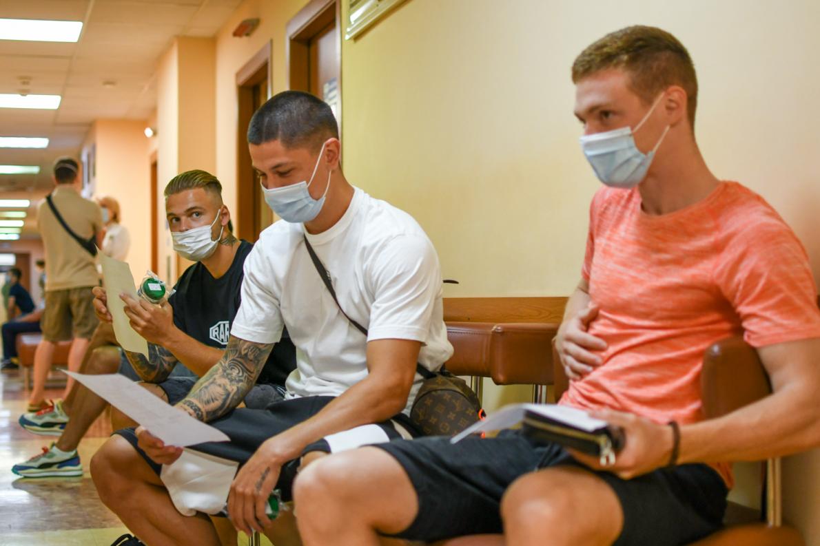 В порядке очереди игроки заходили в кабинеты профильных врачей - невропатолога, терапевта, травматолога, окулиста, лора. Также футболистам сделали кардиограмму, УЗИ брюшной полости и сердца, они сдали весь спектр анализов, измерили давление и антропометрические данные.