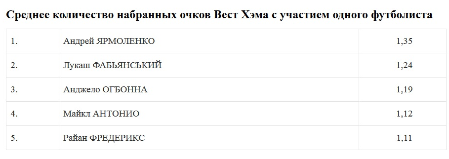 завершившемся сезоне Вест Хэм набирал в среднем по 1,07 очка за игру во