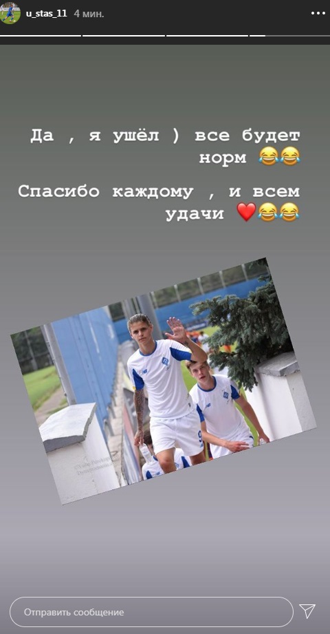17-летний полузащитник "Динамо" Станислав Урсолов покидает клуб. Об этом сообщил сам футболист на своей странице в Инстаграме.