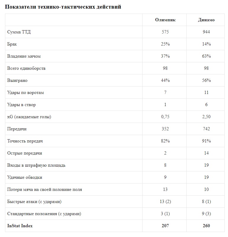 Лучшие футболисты матча Олимпик — Динамо по показателям