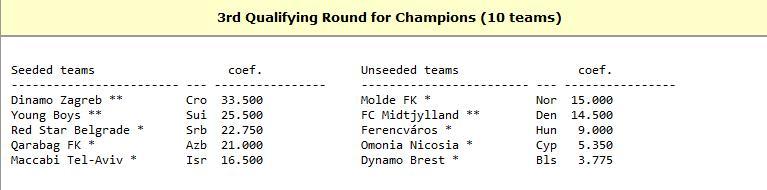 В ней оба клуба будет несеяными при жеребьевке. Их возможными соперниками являются "Динамо" Загреб, "Янг Бойз", "Црвена Звезда", "Карабах" и "Маккаби" Тель-Авив.