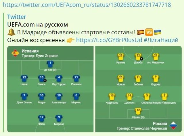 Публикуя стартовые составы на поединок Лиги наций в социальной сети УЕФА на графике вместо фамилий футболистов сборной Украины указал стартовый состав сборной России на предыдущий матч против Венгрии (3:2).