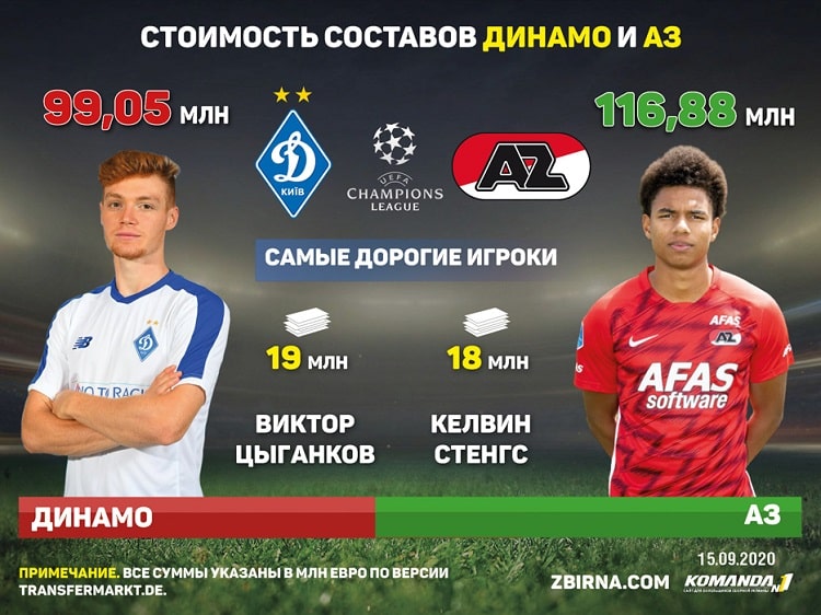Лига чемпионов: у АЗ преимущество над "Динамо" почти в 18 млн евро