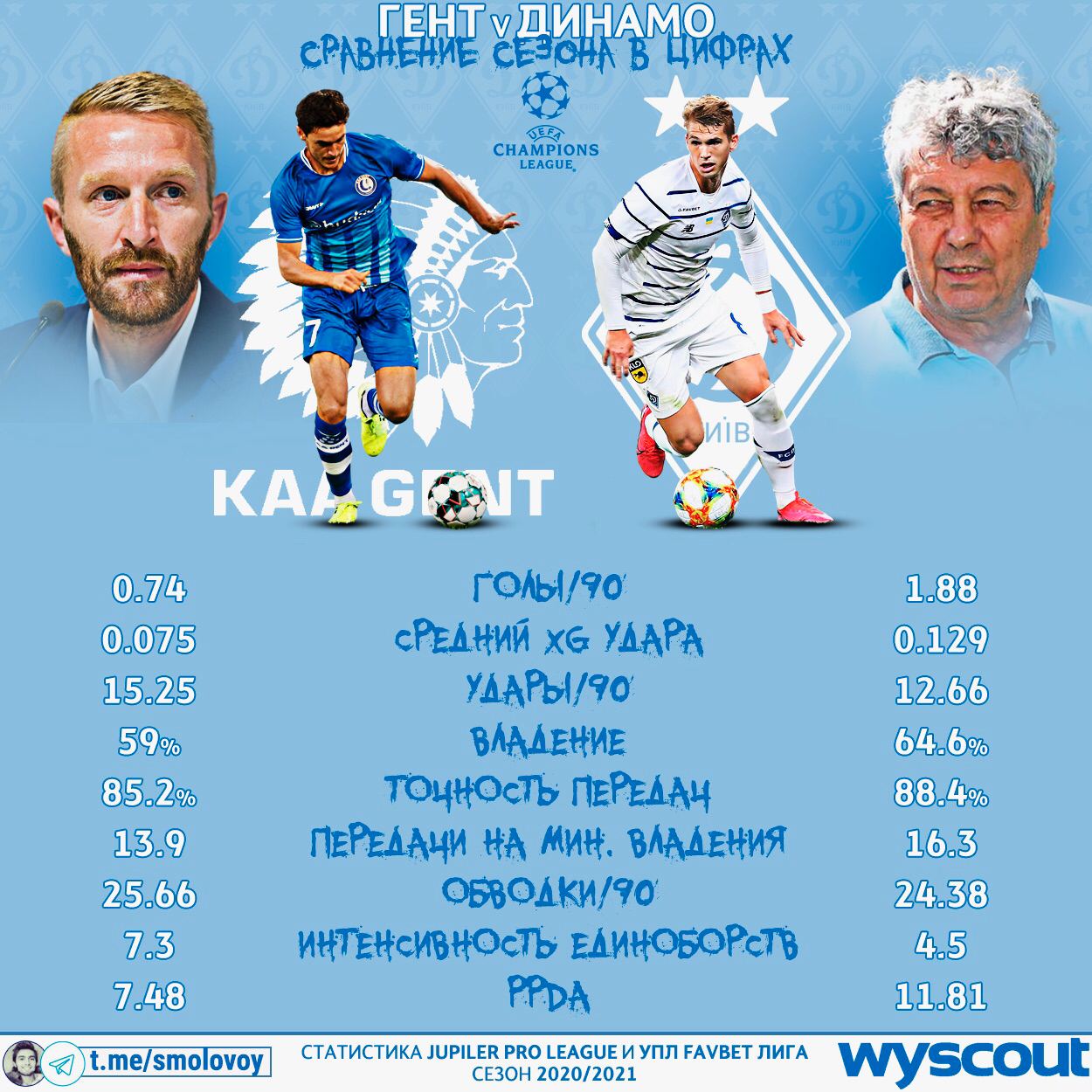 До очного матча каждая из команд ещё сыграет в своём чемпионате. Для нас игра со Львовом в плане статистики (и её привязки к ЛЧ) не будет маркером. Вероятность, что мы заберём мяч под контроль в выездном поединке с Гентом - минимальна. Львов же мы будет уничтожать... На наши цифры не смотрим - всё будет иначе.