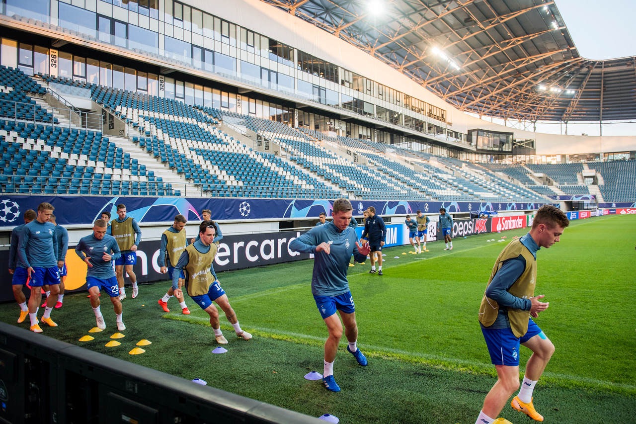 Затем динамовцы вышли на газон стадиона «Гент» чтобы провести предигровую тренировку. Все игроки настроены решительно и понимают важность предстоящего матча.