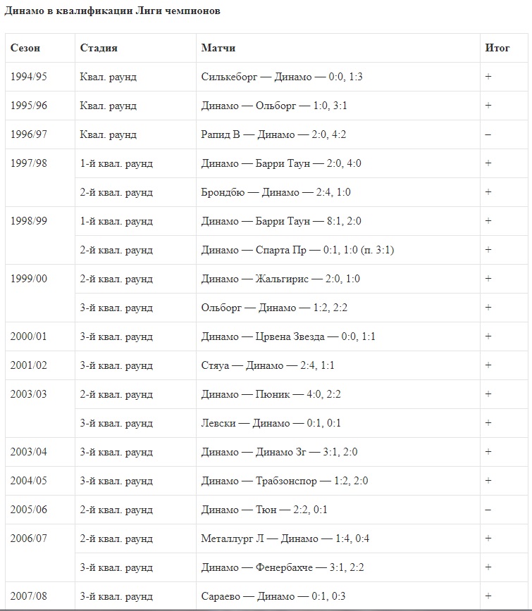 Столичный клуб выступает в квалификации Лиги чемпионов 22-й раз. Трижды бело-синие не попадали в этот еврокубок, а четырежды напрямую пробивались в основной турнир. Всего в активе Динамо набралось 14 успешных проходов отбора и семь вылетов.