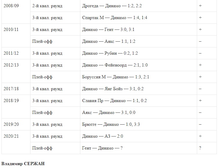 Разрез перед "Гентом": "Динамо" в квалификации Лиги чемпионов за всю историю