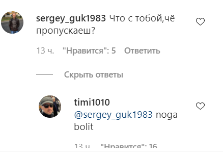 Это уже не первый матч, который пропускает украинский форвард. Ситуацию прокомментировал сам игрок в своем Инстаграме. На вопрос почему не играет, ответил, что болит нога.