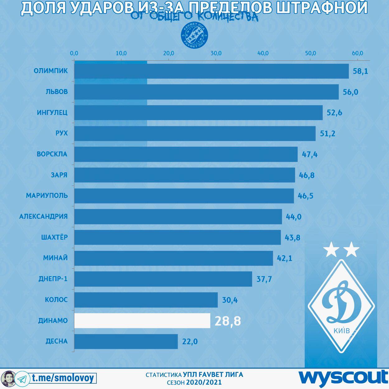В прошлом сезоне 40.7% наших ударов наносилось издали, сейчас - всего 28.8%. Это теперь футбол Динамо.