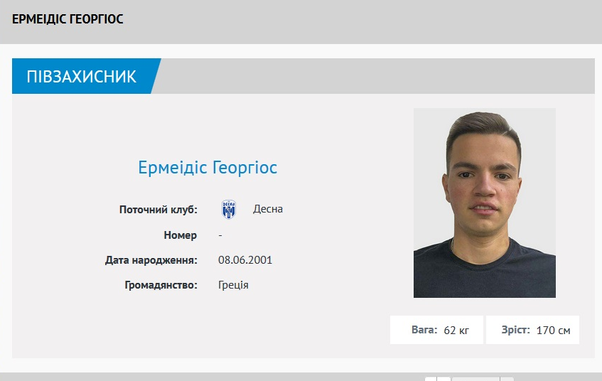 "Десна" внесла в заявку на сезон греческого полузащитника 2001 года рождения Георгиоса Эрмеидиса.