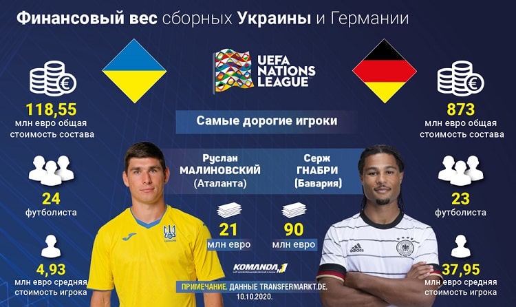 Финансовый вес сборных Украины и Германии: у соперника преимущество в 754 млн евро