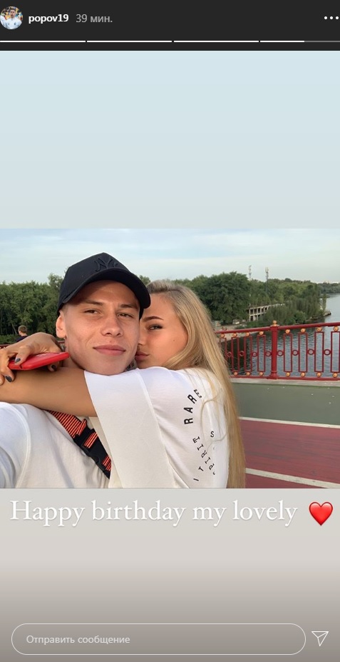 Защитник "Динамо" Денис Попов поздравил с днем рождения свою девушку Дарью Белодед, которой сегодня исполнилось 20 лет.