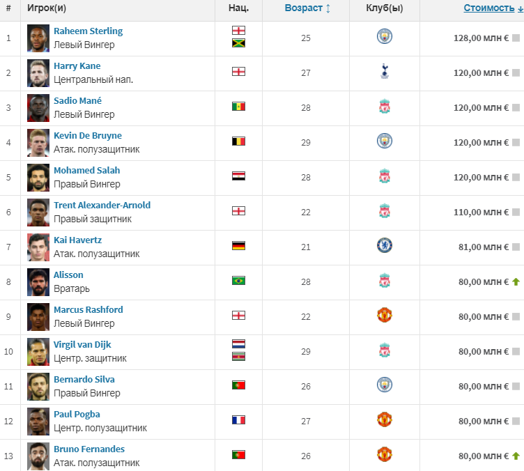 Transfermarkt обновил трансферные стоимости игроков английской премьер-лиги.