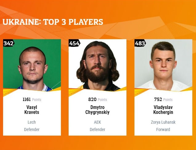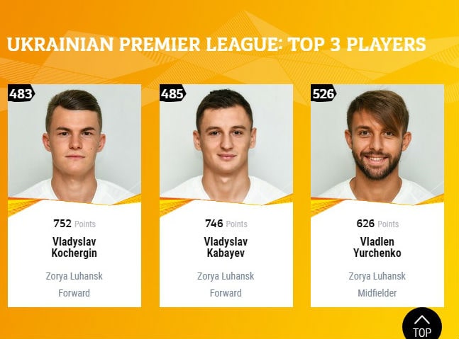 Среди представителей УПЛ, читайте, Зари, лучший — Кочергин. На втором месте — форвард Владислав Кабаев (485). Третий — полузащитник Владлен Юрченко (526).