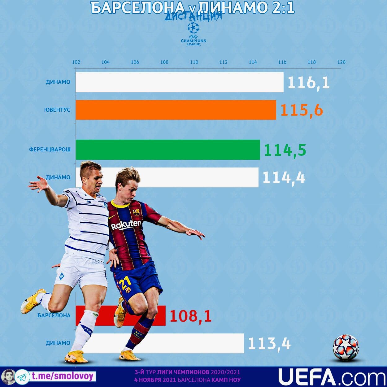 Блогер Михаил Смоловой поделился статистикой по матчу "Барселона" - "Динамо" (2:1).