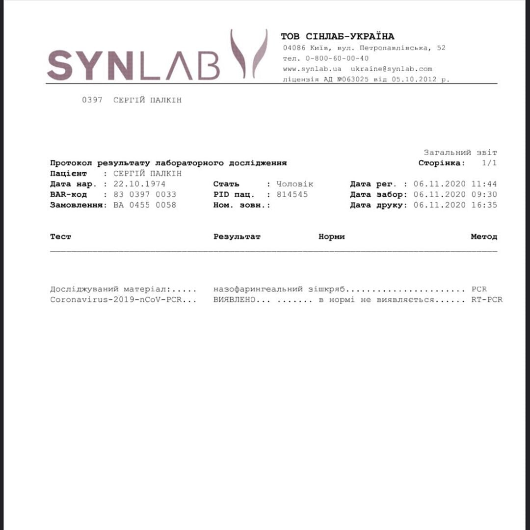 «Вот пришла и моя очередь. Пошел на самоизоляцию», – написал Палкин в инстаграме и прикрепил результат теста.