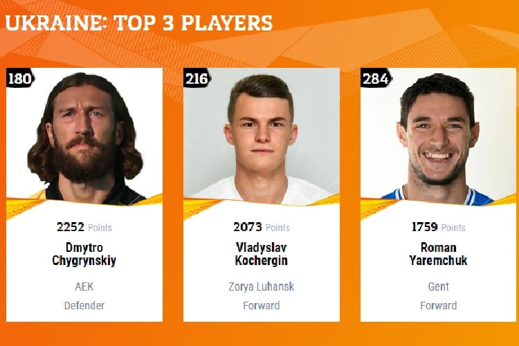 Среди представителей УПЛ, читайте, Зари, лучший — Кочергин. На втором месте — полузащитник Егор Назарина (337). Третий — хавбек Владлен Юрченко (520).