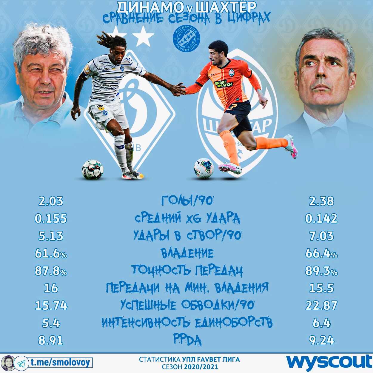 Динамо при более спокойной эпидемиологической ситуации ничем не уступало Шахтёру. Горняки только за счёт группового изнасилования связанного по рукам и ногам Мариуполя смогли обойти Динамо в некоторых метриках.