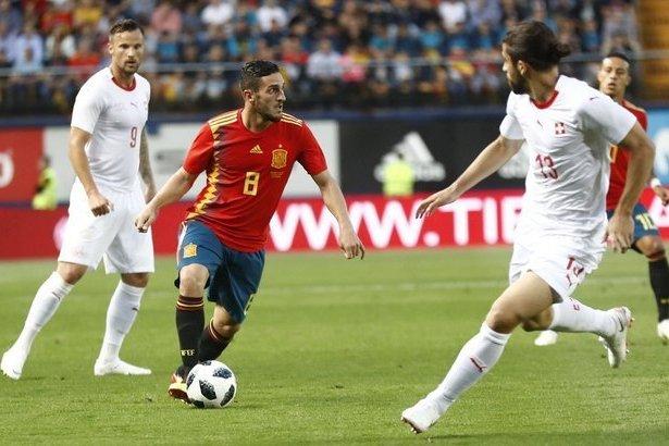 Сборная Швейцарии после первого тайма минимально выигрывает у Испании в матче Лиги наций.