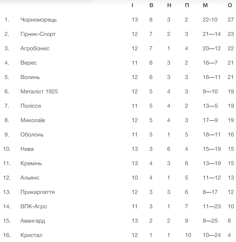 Перша ліга. 13 тур