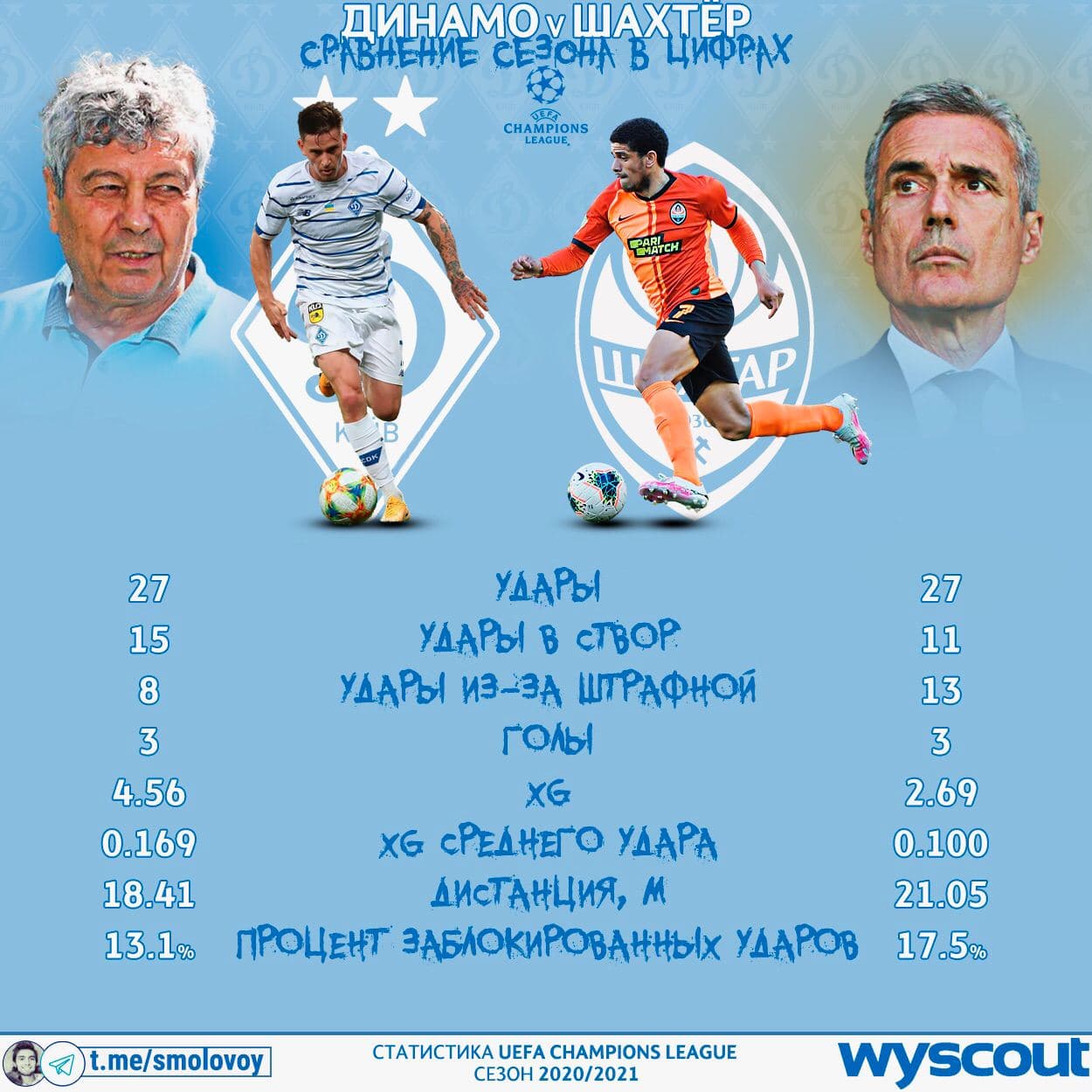 Каждый удар киевлян в ЛЧ на 41% опаснее, чем у горняков. Но снова приходится говорить о реализации: на 4.5 ожидаемых гола наиграли, а забили только 3, как и Шахтёр.