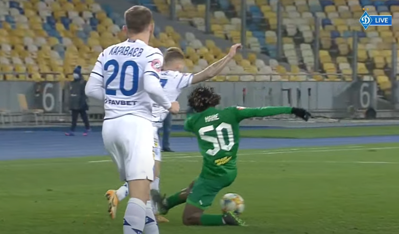 Тобто в УАФ однаково розцінили ці абсолютно різні фоли. Нагадаємо вам, як один і другий моменти виглядали на стоп-кадрах.