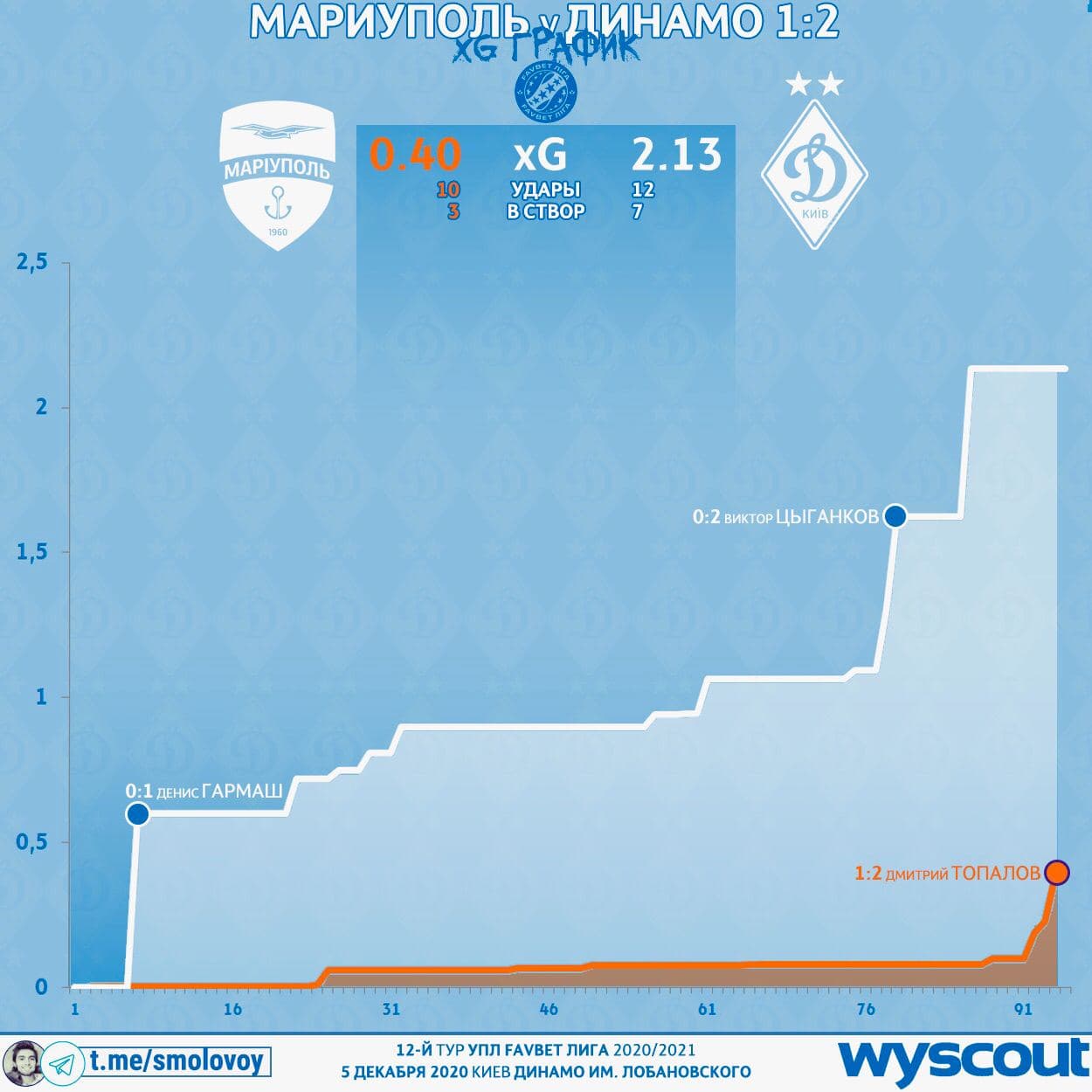 Блогер Михаил Смоловой поделился статистикой по матчу "Мариуполь" - "Динамо" (1:2).