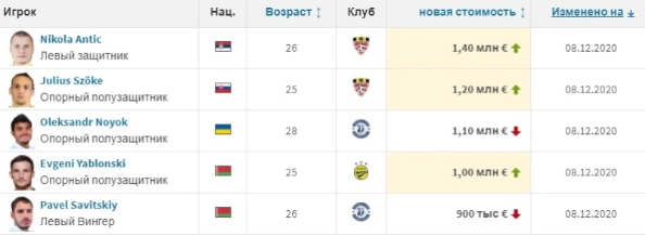 Нойок входит в тройку самых дорогих игроков чемпионата Беларуси, Хачериди снова подешевел