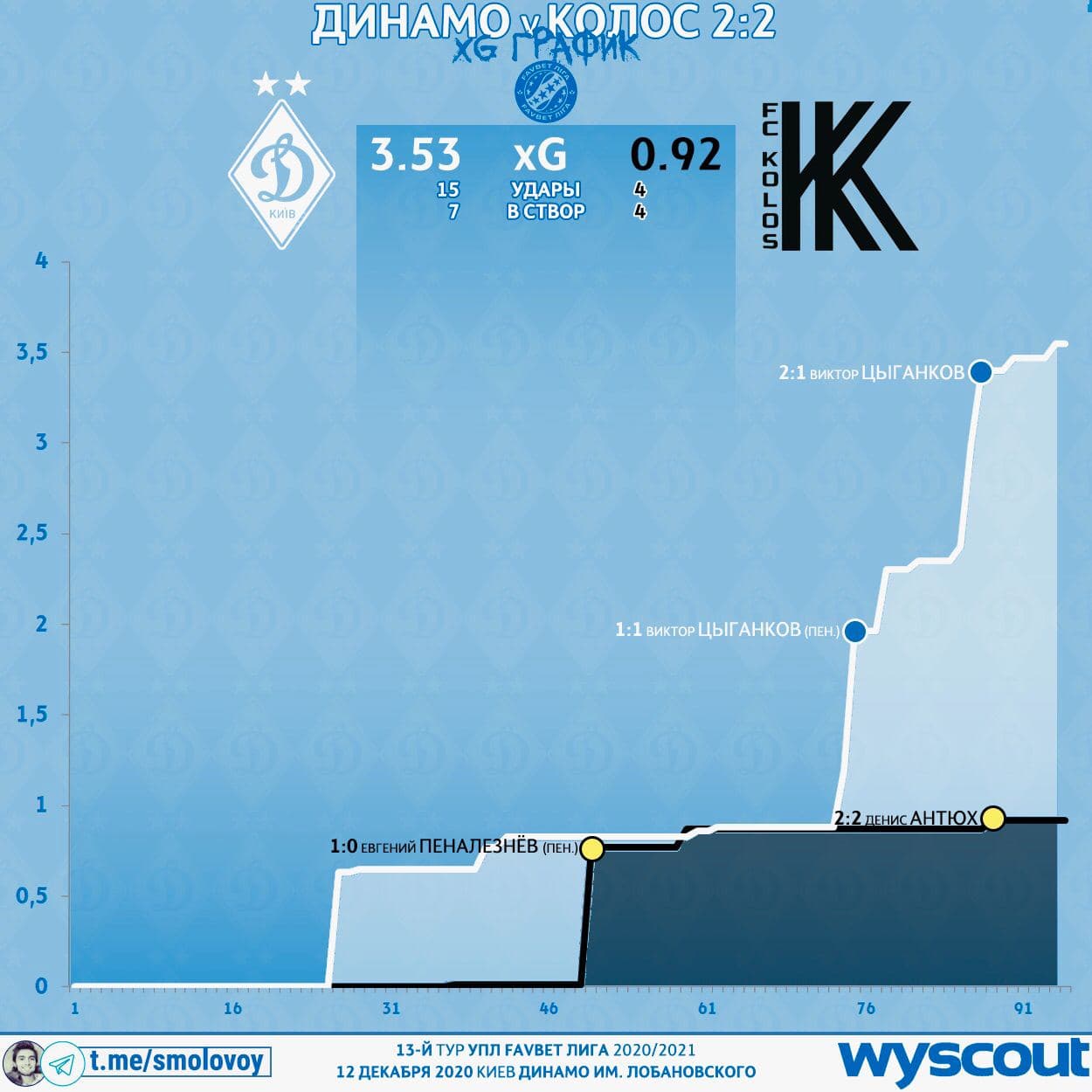Блогер Михаил Смоловой поделился статистикой по матчу "Динамо" - "Колос" (2:2).