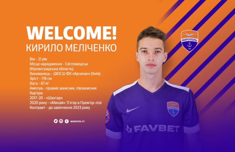 Первым новичком мариупольцев в это зимнее межсезонье стал Кирилл Меличенко, который первую часть сезона провел в «Минае». 21-летний игрок подписал с контракт до конца 2023 года.