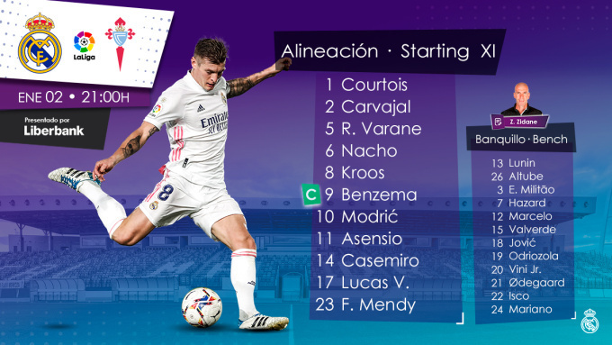«Реал» открывает 2021 год матчем чемпионата Испании против «Сельты». Украинский вратарь Андрей Лунин вновь остался в запасе мадридской команды.