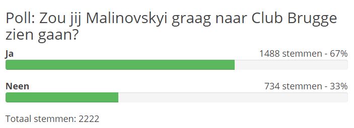 Болельщики Брюгге также поддерживают идею покупки украинца. Согласно опросу, проведенному Voetball24, 67% поклонников клуба за переход Малиновского.