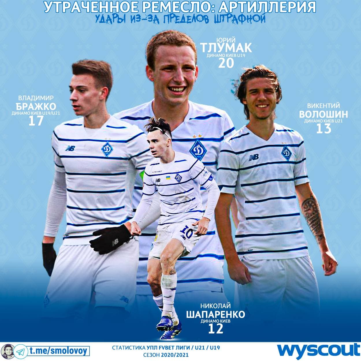 В U19 доля чуть выше - 42.3%. Там по созидательным скиллам команды в общем есть вопросы. Потому именно футболист U19 Юрий Тлумак наш главный дальнобойщик - 20 ударов издали из его 29 попыток в сезоне.