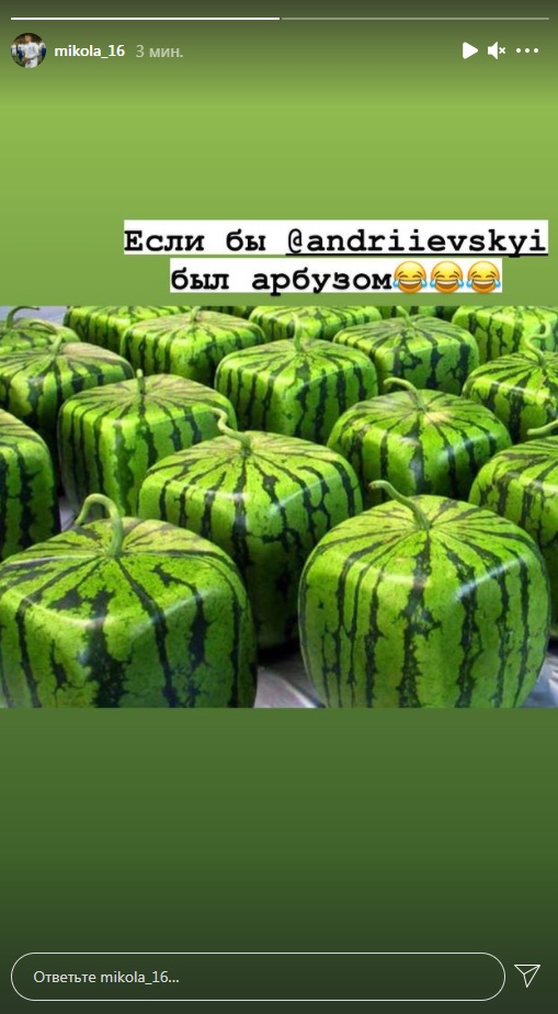 - Если бы Андриевский был арбузом, - подписал фото в Инстаграме Миколенко.