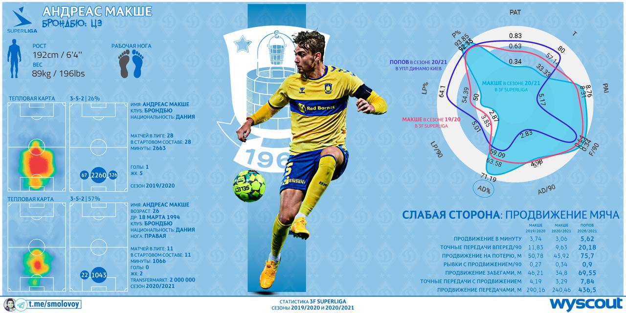 Блогер Михаил Смоловой в своем Telegram-канале разбирает игру Андреаса Макше, об интересе "Динамо" к которому написали в Дании.
