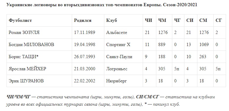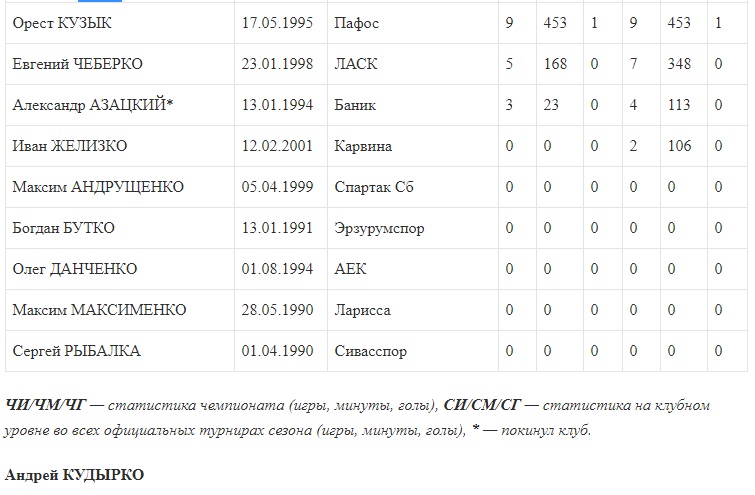Греция (18). Двое из пяти украинцев в Греции не играли — Максим Максименко и Олег Данченко, которые в конце января перешли в Лариссу и АЕК соответственно. Еще трое провели по одному матчу из двух на минувшей неделе за свои клубы.