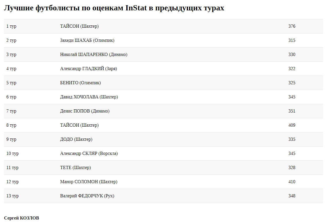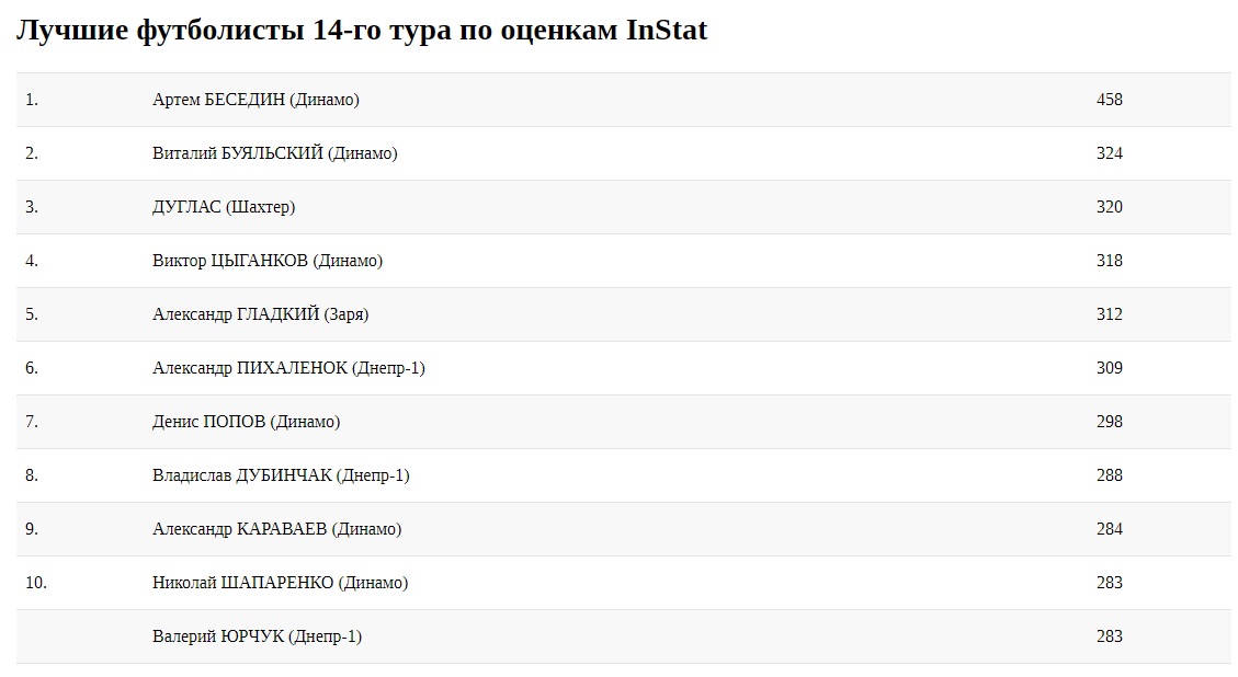Первый же матч после длительного перерыва в карьере нападающий Динамо и сборной Украины Артем Беседин провел на высоком уровне, если судить по эффективности его игры, пишет zbirna.com. Оформив дубль в ворота Олимпика, форвард бело-синих стал самым полезным футболистом первого тура второго круга по оценкам компании InStat. Причем с рекордным в текущем сезоне показателем. Отметим, что в десятку лучших игроков тура вошли сразу шесть представителей Динамо.