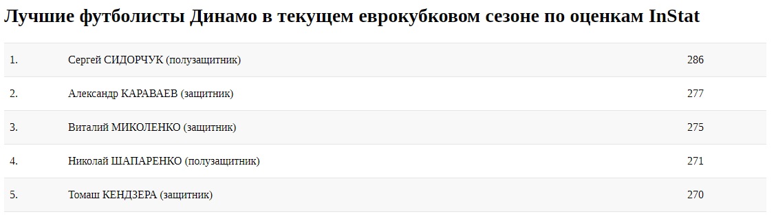 В Динамо, как и в Шахтере, на ведущих ролях с точки зрения общей эффективности игры находятся исполнители, в большей степени ориентированные на оборону. Но это неудивительно, ведь Мирча Луческу начал свою работу с организации защитных порядков. Собственно, это и помогло прорваться в Лигу чемпионов и на жилах вырвать путевку в Лигу Европы. Самый полезный игрок команды — ее капитан, Сергей Сидорчук.