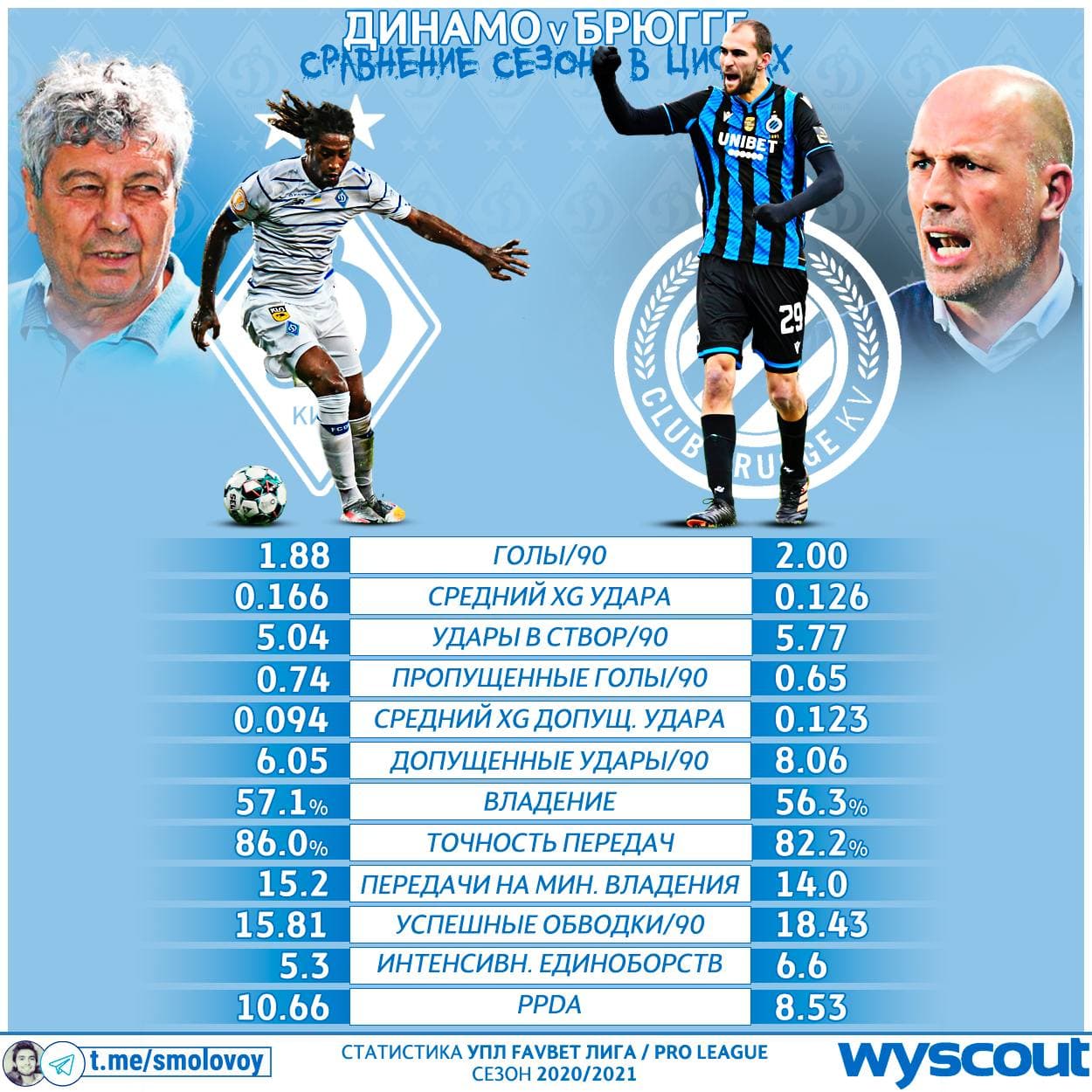 Блогер Михаил Смоловой поделился статистикой по игре "Динамо" и "Брюгге".