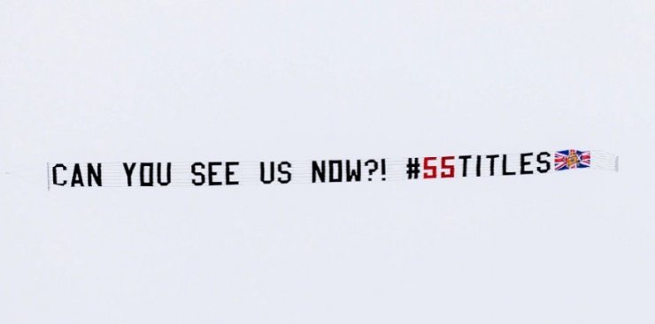 Болельщики «Рейнджерс» воспользовались случаем, чтобы потроллить своих извечных оппонентов. Фанаты наняли самолет, который пролетел над стадионом «Данди Юнайтед», где «Селтик» сегодня сыграл вничью. Именно благодаря этому результату чемпионская гонка была завершена.