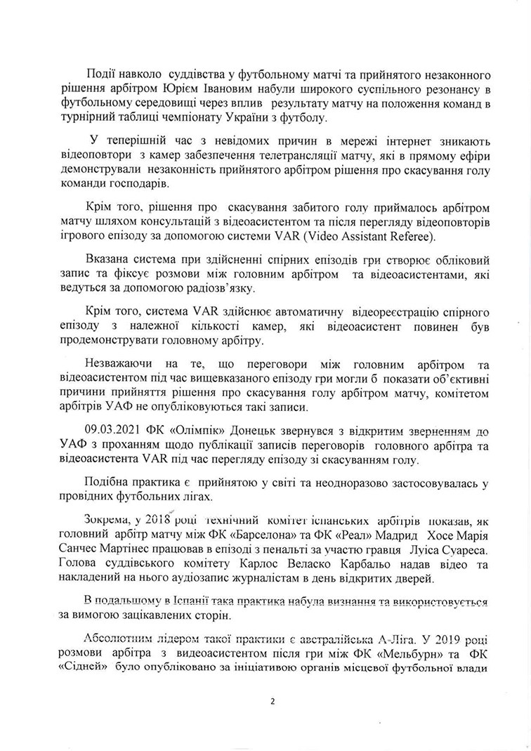 Одновременно с этим, клуб опубликовал открытое обращение к чиновникам УАФ с просьбой опубликовать запись разговоров арбитра и видеоасисстенов VAR, как это давно делается в ведущих футбольных странах.