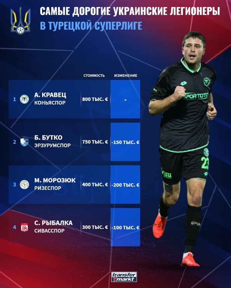Кравец остается самым дорогим украинцем в Турции. Бутко, Морозюк и Рыбалка потеряли в цене