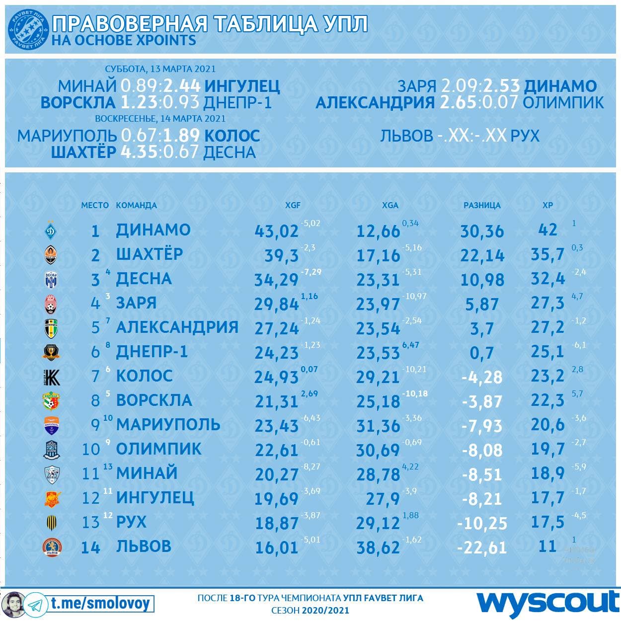 Отмечу ещё Минай, который отобрал у Десны статус самой невезучей атаки Лиги: 8.27 голов дефицита от ожидаемого, - написал Смоловой в своем телеграм-канале.