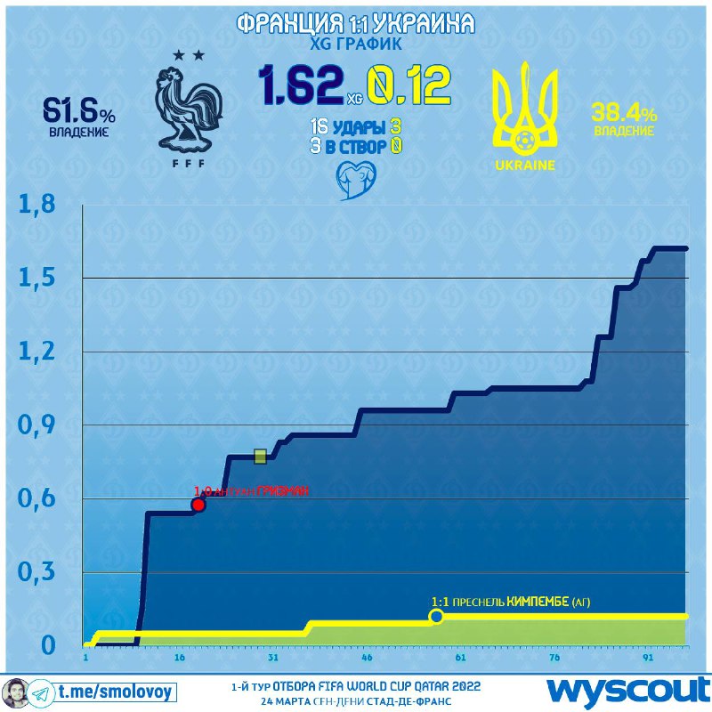Блогер Михаил Смоловой в своем Telegram-канале анализирует игру сборных Украины и Франции.