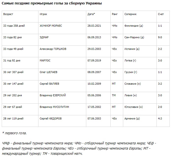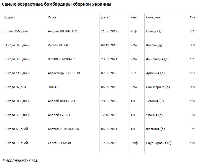 К слову, в общем в более «пожилом» возрасте забивали за главную команду страны только Андрей Шевченко и Руслан Ротань.